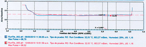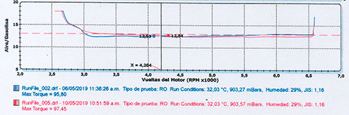 The results show that the device helps the vehicle maintain an optimal LAMBDA value, ensuring a better fuel-air mixture and more efficient combustion.