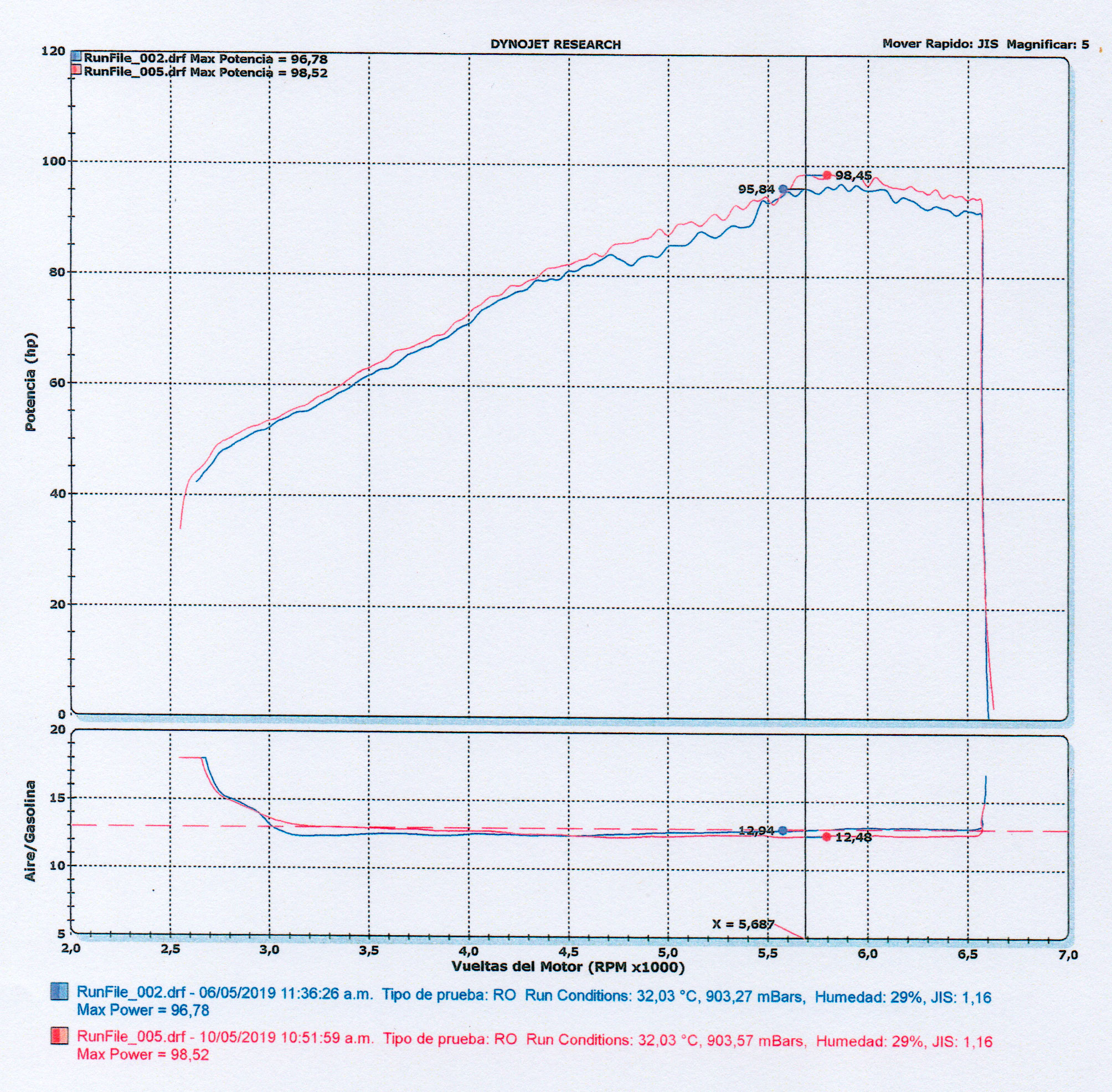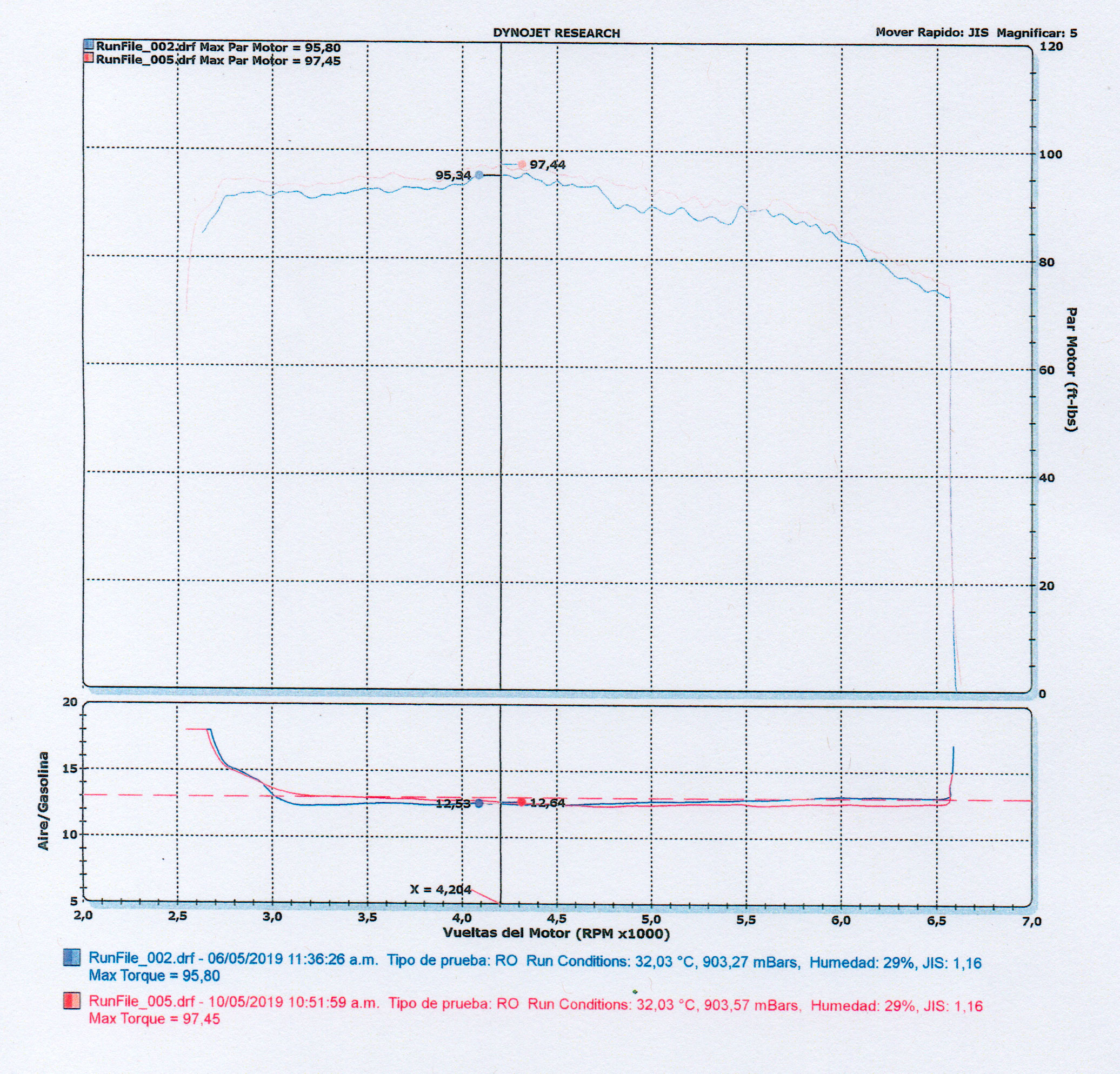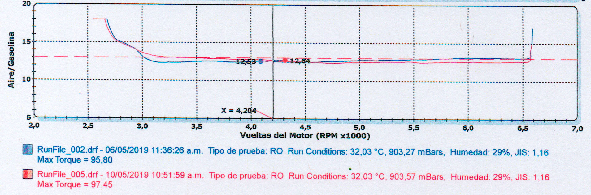 The Toyota Yaris (2018) underwent a dynamometer test to evaluate the performance impact of the OVER WHEELS device. The test results clearly demonstrate the improvement in torque and fuel mixture efficiency after installation.